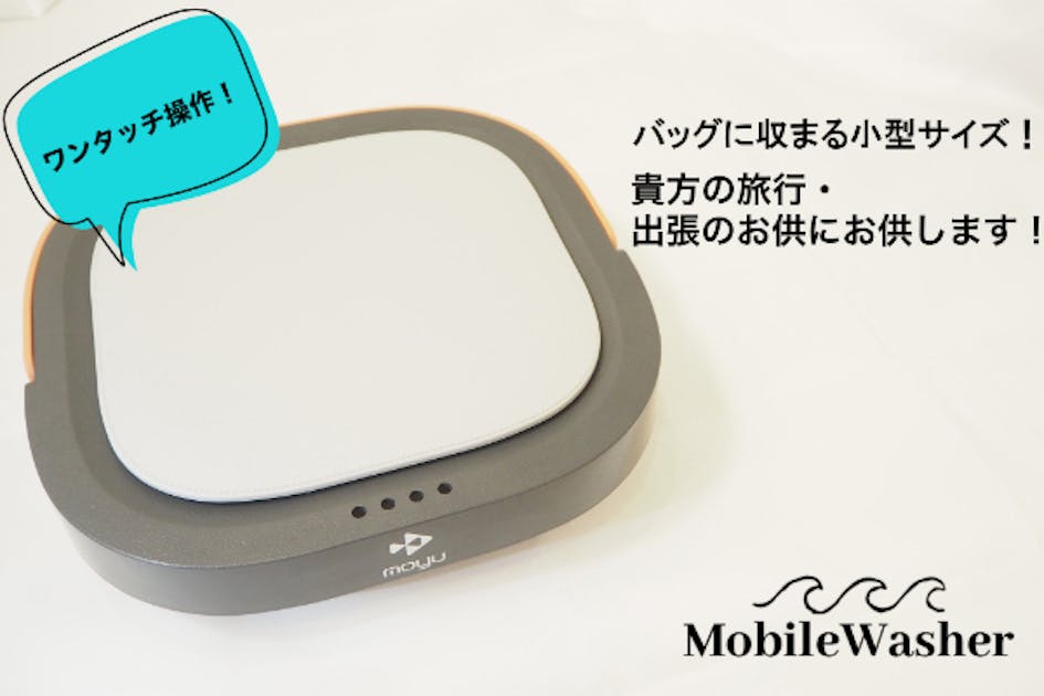 「MobileWasher」は、コンパクトな折り畳み式洗濯機。保管や持ち運びが容易なので、出張や旅行の際にいつでも衣類を洗濯できます。